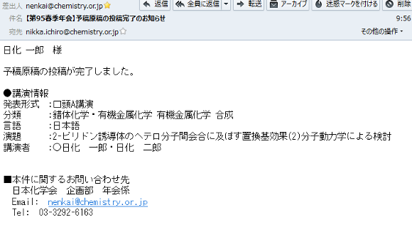 登録メールアドレスに「予稿原稿の投稿完了のお知らせ」メールが届きます。