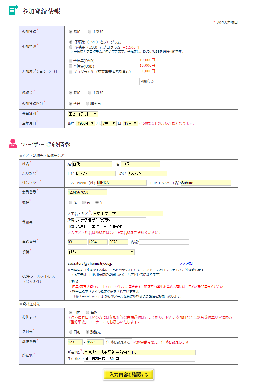 申込に必要な講演情報を入力し、『入力内容を確認する』ボタンをクリックして次へ進んで下さい。